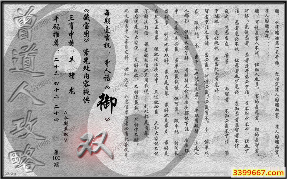 103期藏寶圖 新:花鲜绚日猩红妒 老:闻道潮头壹丈高 禁:蛇 禁:9尾
