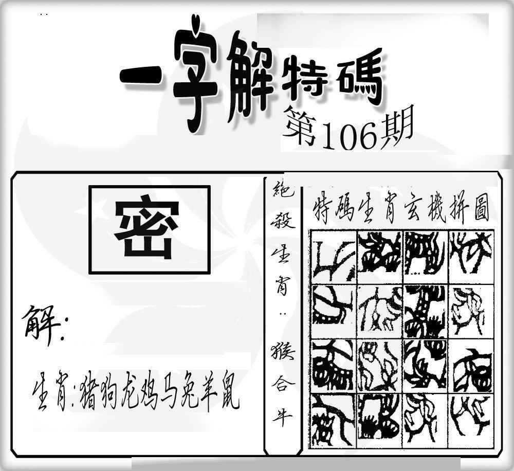 | 主题 :106期:一字解特码 |