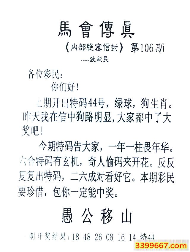 106期:首发推荐:≮馬會傳眞≯→(香港正版)
