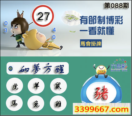 088期正版彩图挂:27 爆:猪 挂牌成语:如梦方醒 挂牌出肖:虎羊鼠马兔鸡