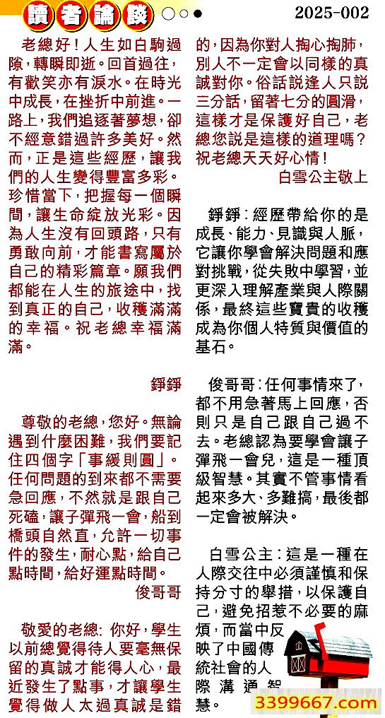 | 主题 :002期:彩民推荐〖貼信讀者論壇〗 |
