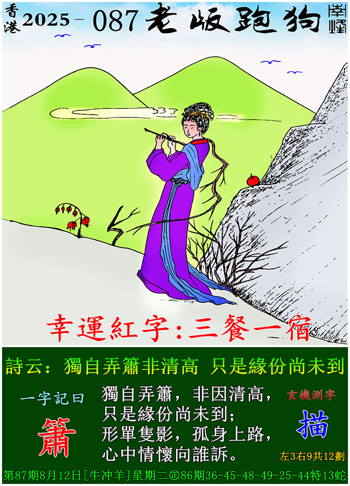 主题 :087期老版跑狗一字記之曰:【簫】 玄機測字:《描》