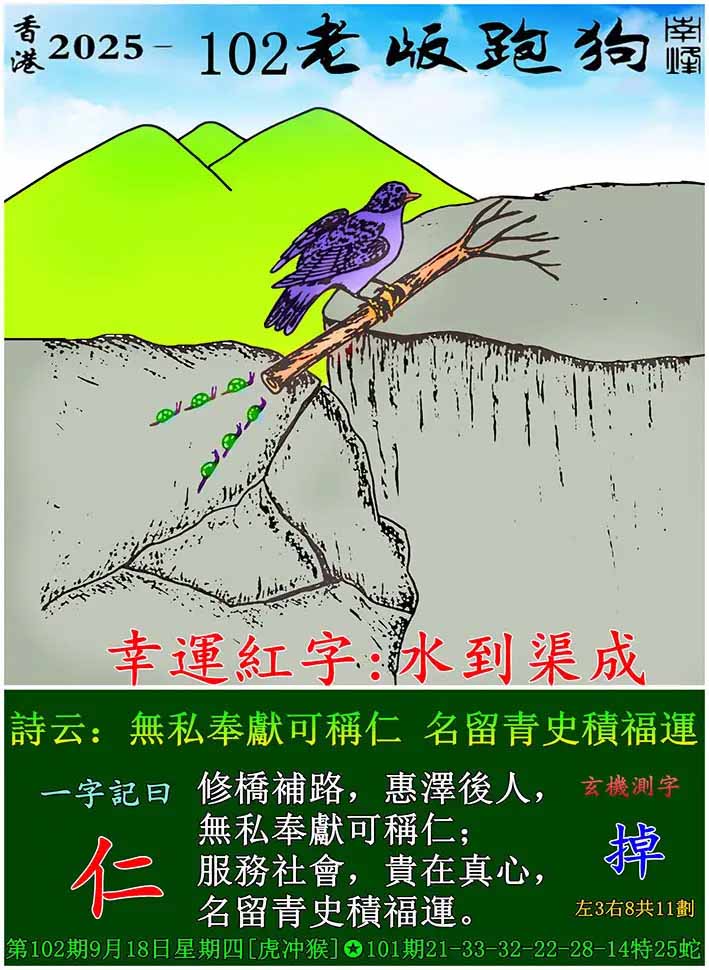 主题 :102期老版跑狗一字記之曰:【仁】 玄機測字:《掉》