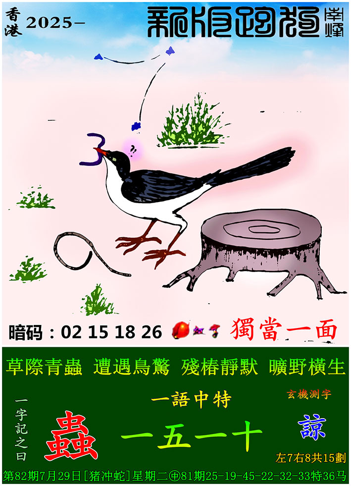 082期:新版跑狗一字記之曰【蟲】 玄機測字:【諒】