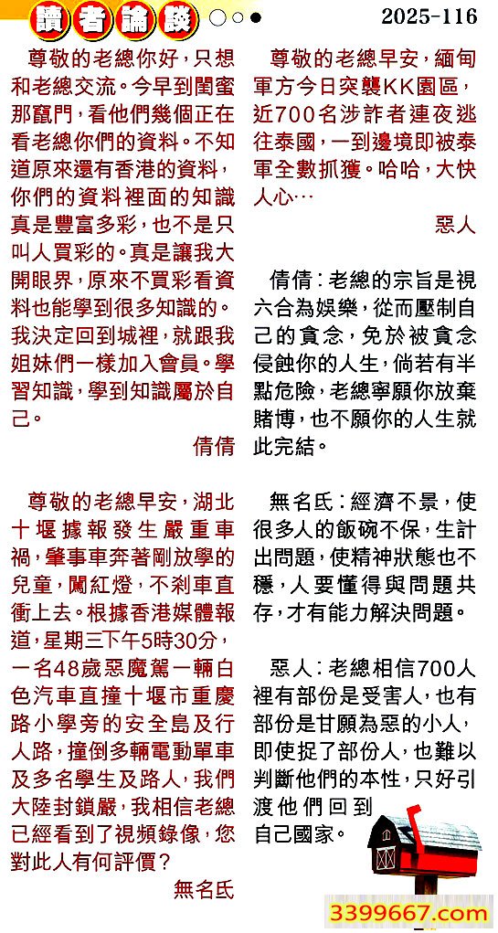 116期:彩民推荐〖貼信讀者論壇〗